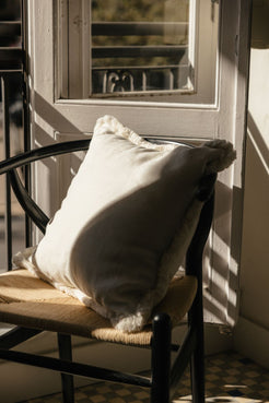 Cojín Artesano Flecos Puro Lino Blanco
