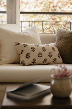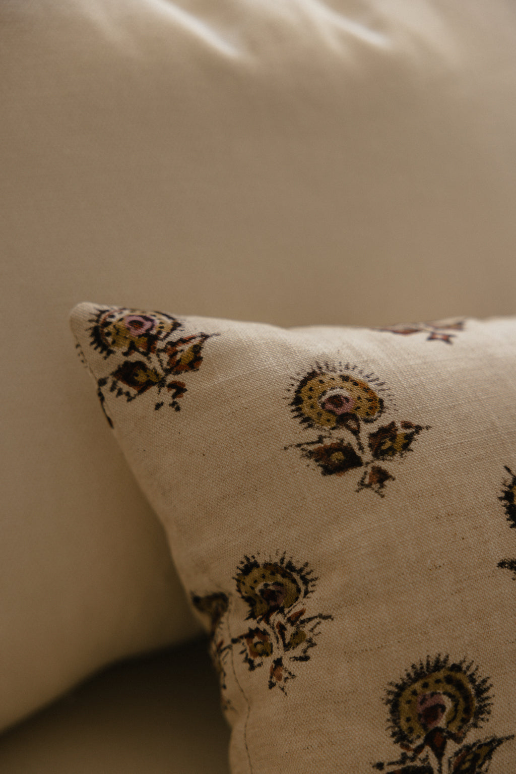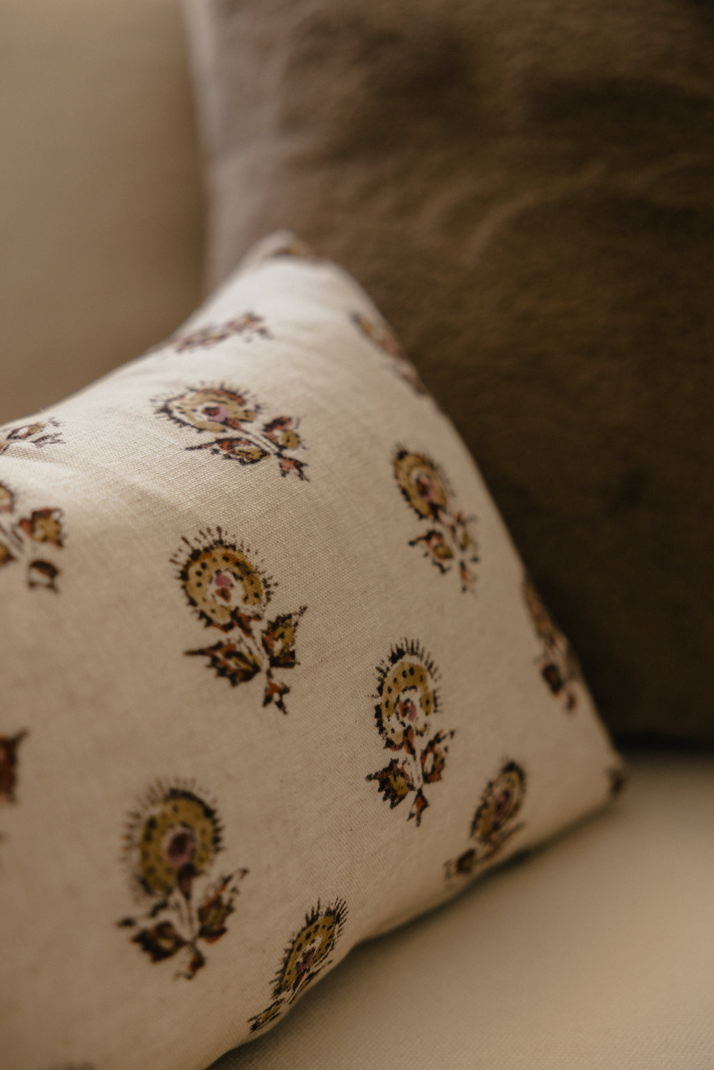 Cojín Artesano confeccionado en lino con un precioso estampado de flores de primavera.