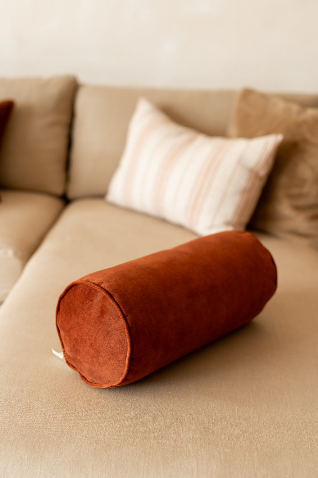 Cojín en forma de cilindro en color terciopelo